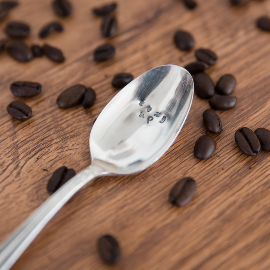 Cozy Up Hand Stamped Vintage Coffee Spoon